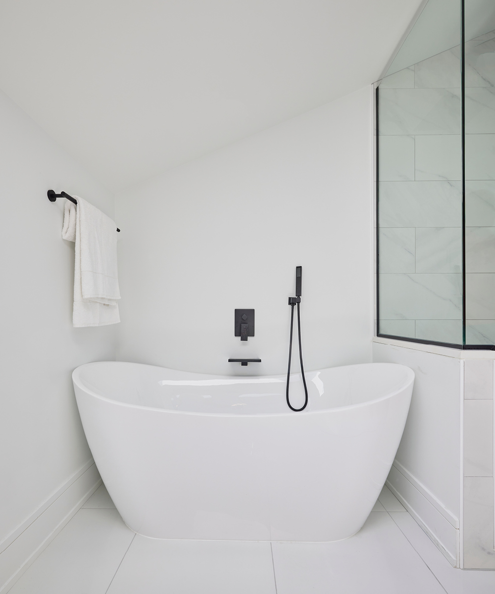 The original structure had been vacant for years and was in such poor condition that not much was salvageable except the foundation. Working within the footprint of the original foundation, we creatively expanded both downward with a newly excavated basement and upward with a third-floor primary bedroom suite.